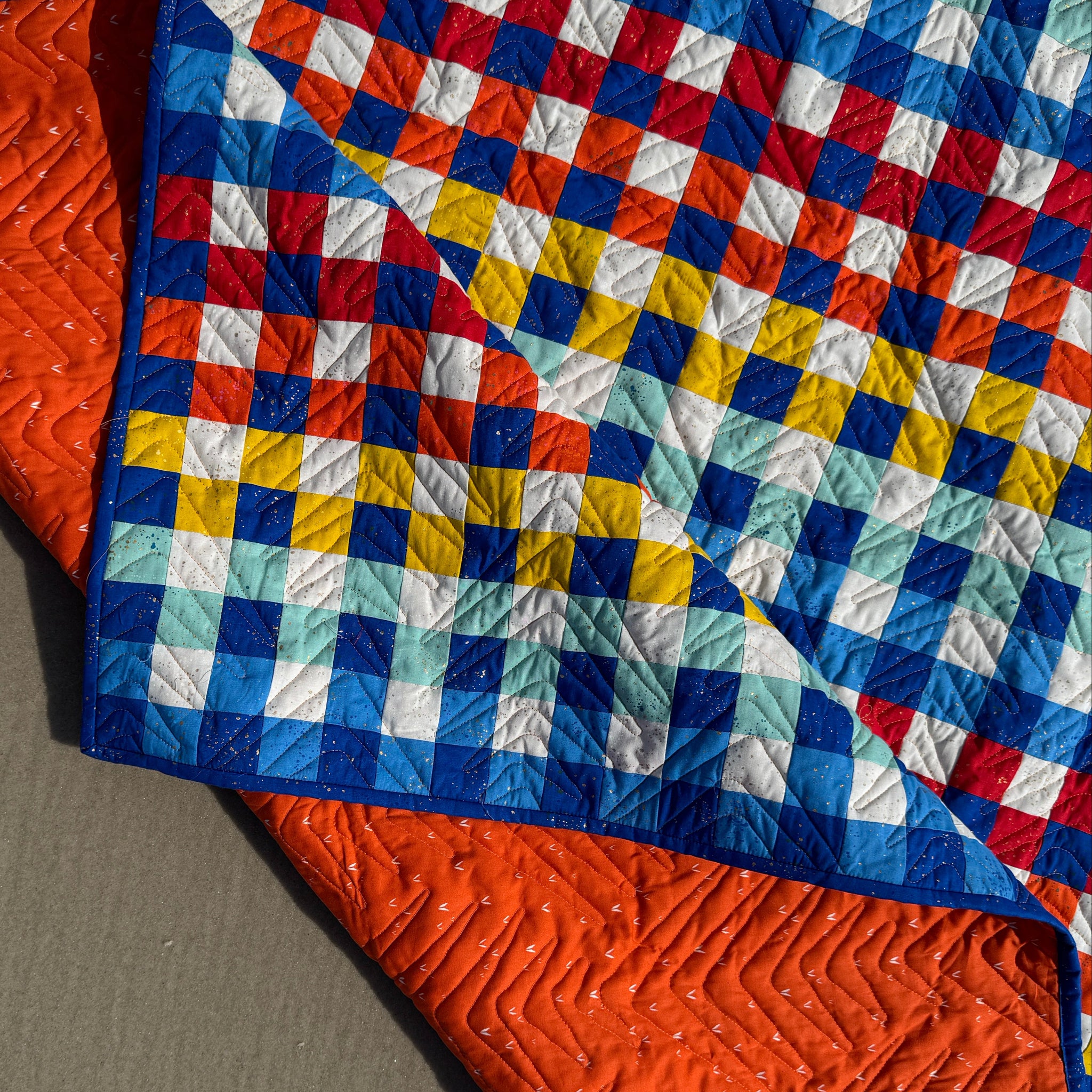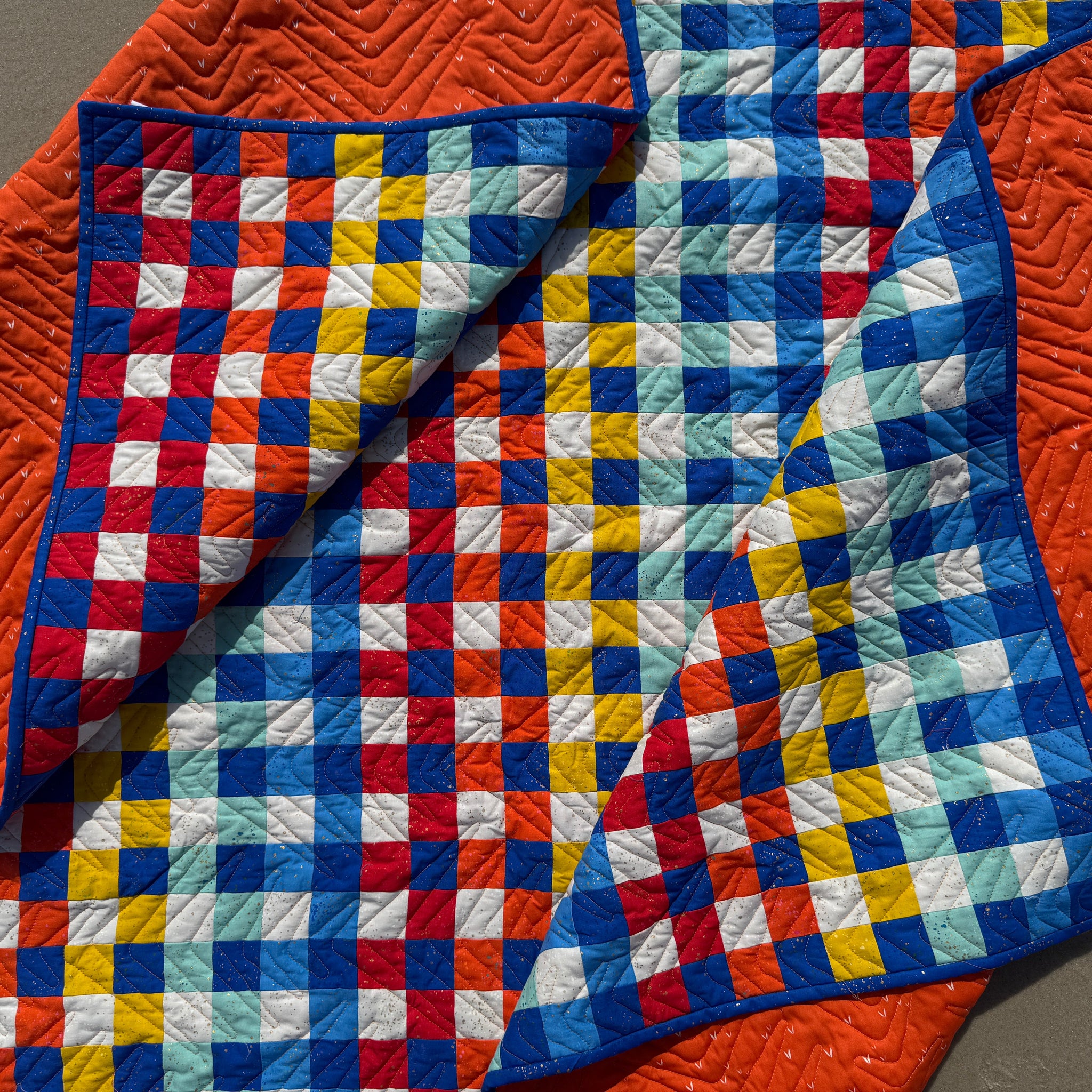 Patsy is the second quilt pattern in TCQ’s C.R. 822 series. These quilts are based on the woven aesthetic of handmade woven loom potholders. Patsy is a fun and colorful take on the buffalo check. It has two versions - the Full Rainbow using 10 colors plus the background colors and the Half Rainbow using 5 colors plus the backgrounds.